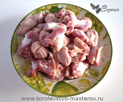 Приготовление:Желудки хорошо промыть и почистить, если они не почищены или почищены плохо (снять желтую кожицу).