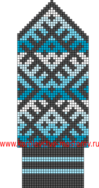 Схема вязания спицами варежек с орнаментом по мотивам северных узоров.