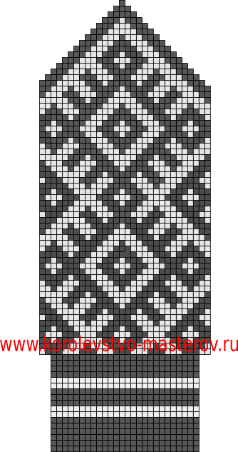 Схема вязания спицами варежек с орнаментом по мотивам северных узоров.