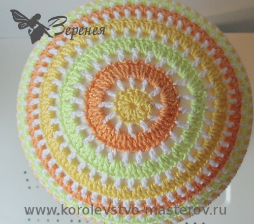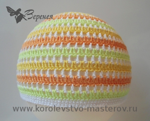 Детская шапочка крючкомНачинаем вязание шапочки с макушки. Крючок № 2,5