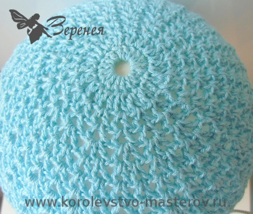 Летняя шапочка крючкомНачинаем вязание шапочки с макушки. Крючок № 1,5