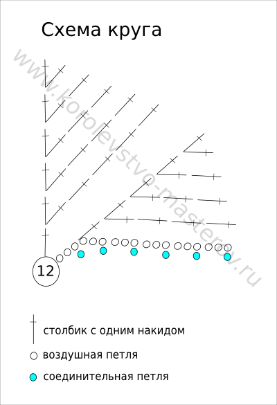 2 ряд: *7 столбиков с накидом под воздушные петли 1 арки, столбик без накида под воздушные петли второй арки* повторять от * и до *.
