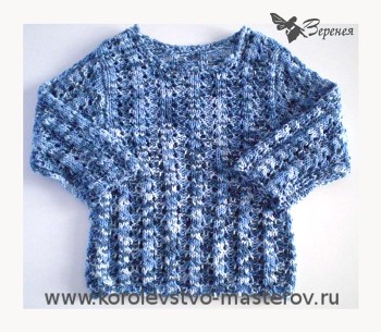 Ажурный пуловер спицамиТак как я не люблю сшивать вязание изделия, то решила связать пуловер хотя бы без боковых швов.