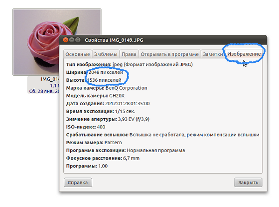 Окошко свойств "Изображения":