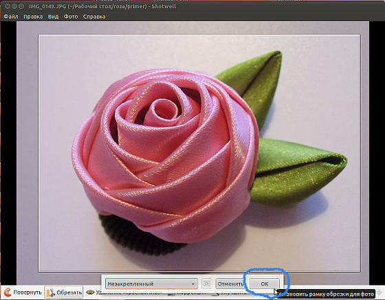 После того как выбрали границы обрезки фотографии нажимаем "OK".