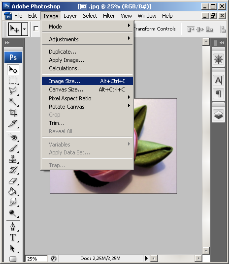 Image -> Image Size ... (Изображение -> Размер изображения)или жмем одновременно клавиши