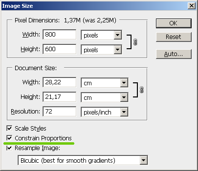 Изменили на нужную нам, к примеру 800px по ширине и программа автоматически пересчитала, что по высоте будет 600px. Жмем OK или сохранить.
