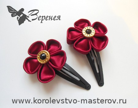 Канзаши: цветок из атласной ленты. Заколки