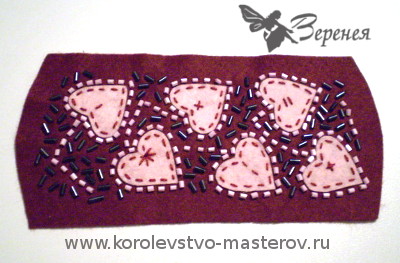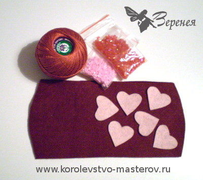 Материалы: фетр, нитки «Ирис», бумажная выкройка чехла и сердечек, маркер по ткани, стеклярус и_или бисер.