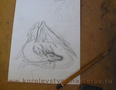 На бумаге набросаем абрис того, что будем делать. Здесь это свернувшийся дракончик.