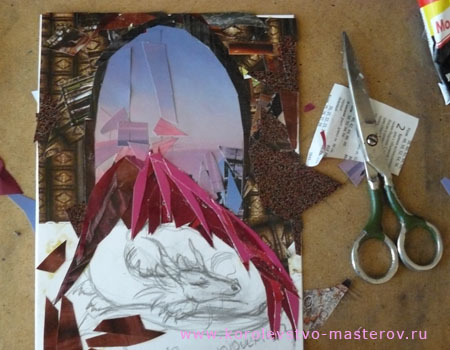 Учимся делать коллаж. Открытка "Розовый дракон" своими руками.