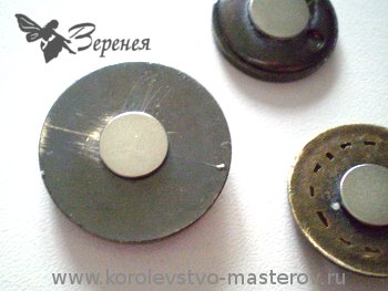 Описание работыСамое простое если у Вас плоская пуговица. Тогда надо намазать ее клеем с обратной стороны по центру и приклеить магнит.