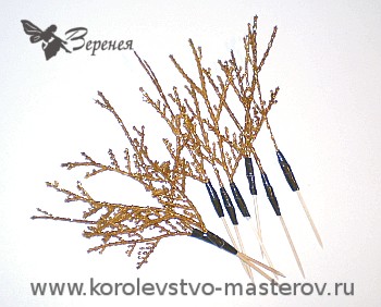 Делаем такие же дротики из золотистой веточки и зубочисток. К золотистой веточке клеевой пистолет приклеивает плохо. Поэтому делаем дротики при помощи скотча.