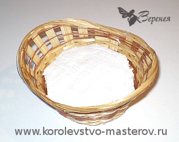 Вырезаем пенопласт по форме донышка корзинки и приклеиваем его с помощью клеевого пистолета.